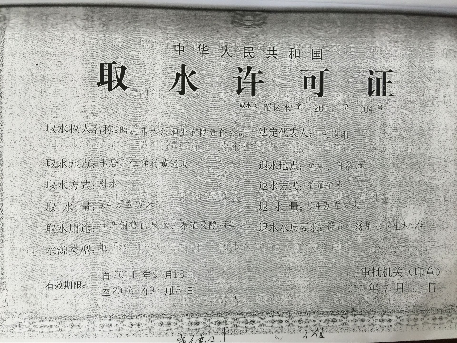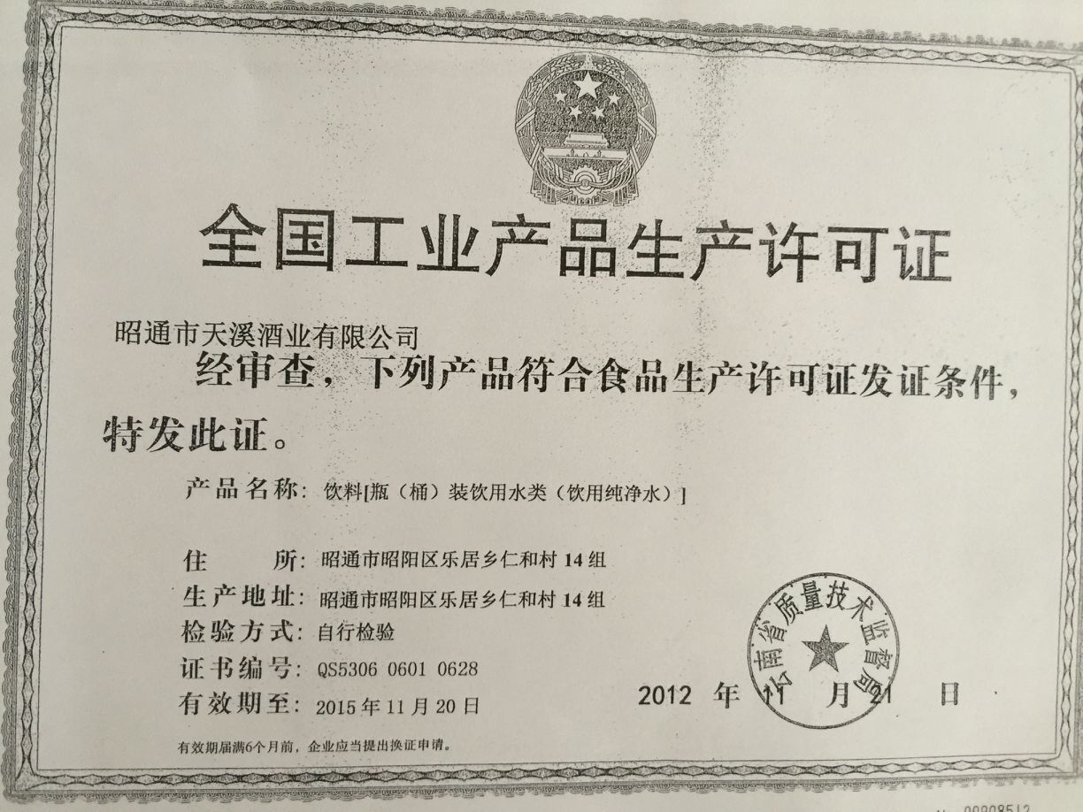 昭通市天溪酒業(yè)有限公司資質證照復印件