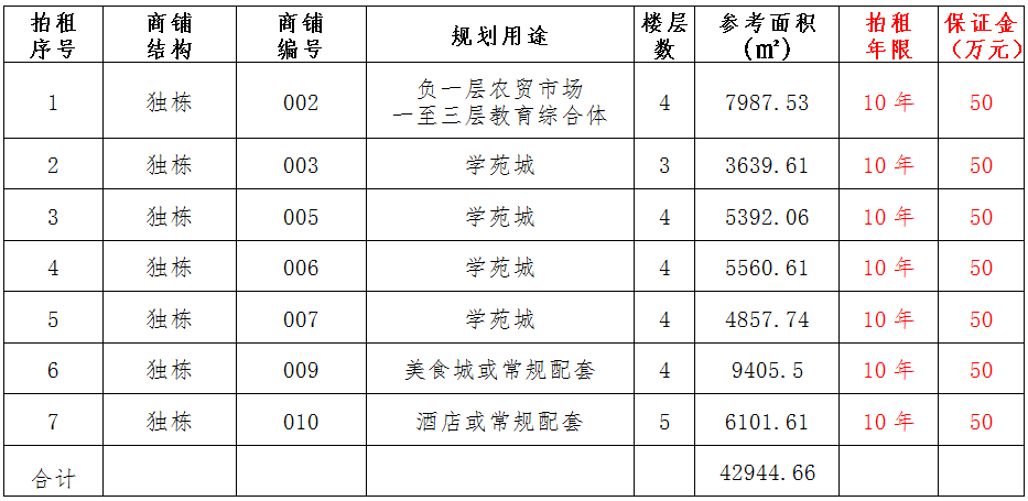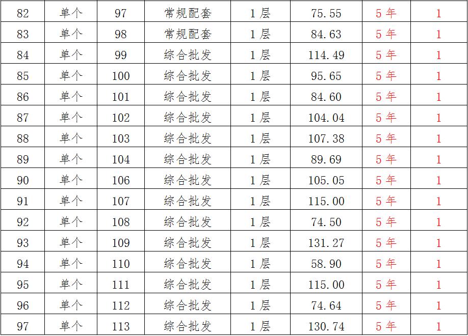 (一)拍租位于鎮(zhèn)雄縣南臺(tái)街道呢嚕坪安置點(diǎn)7棟獨(dú)立商鋪使用權(quán)。以棟為單位拍租。詳見(jiàn)下表: