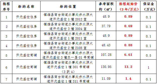 受相關產權人委托,公開拍租鎮(zhèn)雄縣國有資產使用權。拍租遵循公開、公平、公正、誠實信用、價高者得的原則。現(xiàn)將有關事項公告如下: