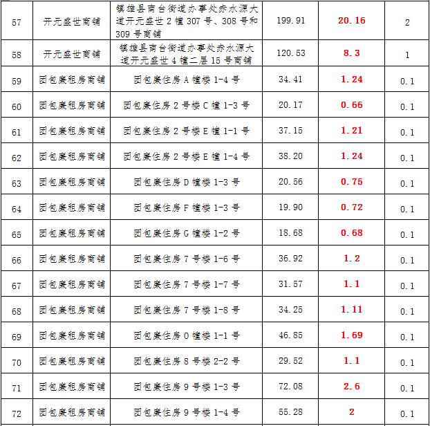 (三)拍租鎮(zhèn)雄縣城市運營管理有限公司國有門面3年期使用權,詳見下表: